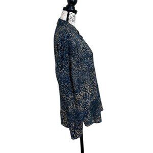 Kobi Halperin Women's Silk Top Button Up Long Sleeve Blue Tan Black Size S