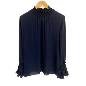 Kobi Halperin blouse women’s size M navy blue 100% silk smocked luxury career