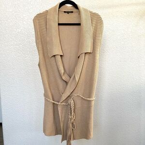 Kobi Halperin Tan Sleeveless Shawl Collar Draped Cotton Cardigan, Size L