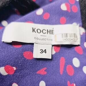 Koché Collective Lace Trim Dot Slip Dress Purple Slit Detail V Neck Size 34