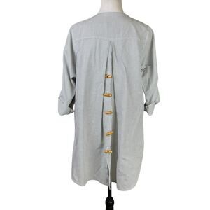 Koch Gray White Stripe Oversized Back Toggle V-neck 3/4 Sleeve Button Up Top