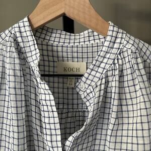 Koch Popover Oversized 100% Cotton Blouse XS Womens Checkered