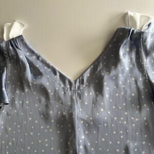 Koch Silky Flutter Sleeve Shoulder Bow Button Up Baby Blue Star Print Blouse M