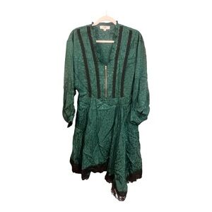 Koche V-Neck Lace Trim Animal Print Green Midi Dress Size 38 WA1
