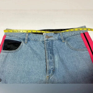 Lightwash denim jeans with a pop of red & black jersey stripe.