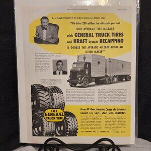 This is a dual sided vintage advertisement piece. On the front side is a classic Kodak Camera advertisement with a very "Norman Rockwell" Feel. On the back side is an advertisement for General Tire and Rubber. This piece could make an excellent Christmas gift for any camera enthusiast or mechanic.