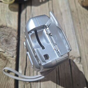 Vintage Kodak Easy Share Camera CX7300 in silver, perfect for parts or repair. This 3.2 MP digital camera is a nostalgic piece for collectors or DIY enthusiasts. No memory card included.