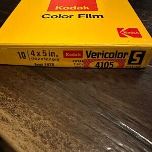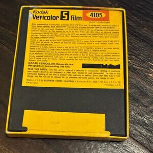 Description: Vintage Kodak Vericolor S Professional Color Film, 4x5 inch sheets (CAT 4105). Manufactured by Eastman Kodak Company, Rochester NY. Expired September 1975. Rare find for collectors, analog film enthusiasts, and darkroom display.