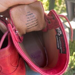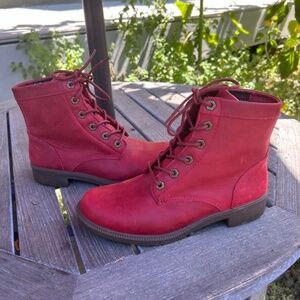 New very nice wine red leather KODIAK laced waterproof Thinsulate insulated ankle boots, size 8. Tag says 'Canada's Boot. Heel height is 1 1/4" and sole is slip resistant material. Toe is rounded. Each side has 6 metal grommets for the laces.