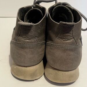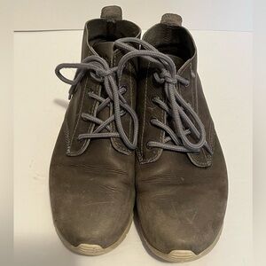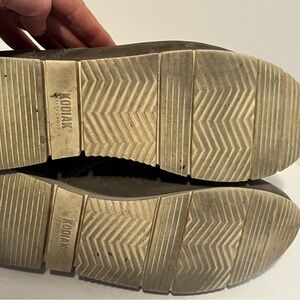 These Kodiak ankle boots feature a sleek gray suede upper, offering a soft and matte appearance. Designed with a lace-up closure and a low heel, they provide both style and comfort.