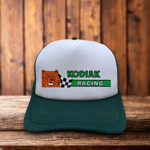 Kodiak Racing Mens Trucker Hat Green Snapback Vintage 70s Logo Drag Baseball Cap