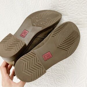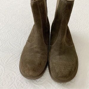 100% suede leather ankle chelsea boots in olive brown coloration. Slip-resistant rubber outsole. Waterproof with sealed seams. Microfiber lining.