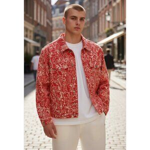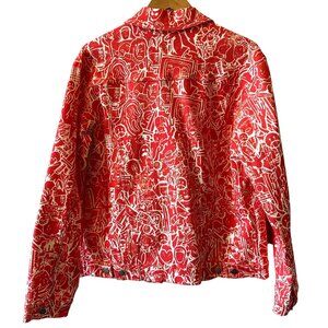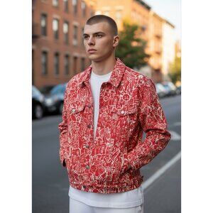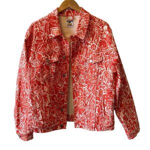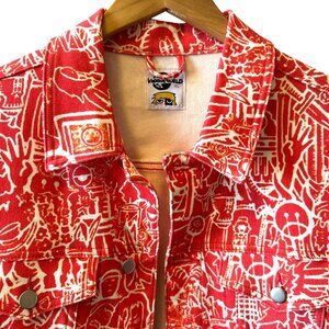Kodone World Horror Core Print Jean Jacket in Orange & White – Men’s Size XL