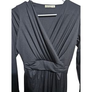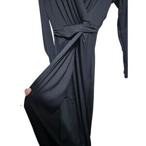 Koh Koh Wrap Dress Formal Maxi Long Sleeve Black Vneck Womens Size Medium (854)