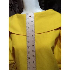 Beautiful vintage yellow women's 3/4 in designed sleeve made in California two loop button closure with split large round neck collar double-breasted beautiful pleated sleeve back lower pleat pockets on each side SKU#Z-51