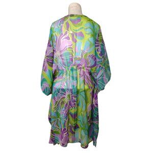 Kohinoor Embellished Kimono Swim Cover Up One Size Sheer Beach Tropical Flowy