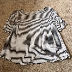 Kohl’s Navy and White Striped Baby Doll Tee with Partial Open Back