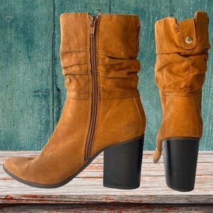 Kohls Pointed Toe Chunky Heel Boots Faux Suede