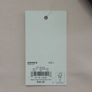 Kohl's SO - Cinch Bottom Boho Top - Black/Pink - Size L - NWT