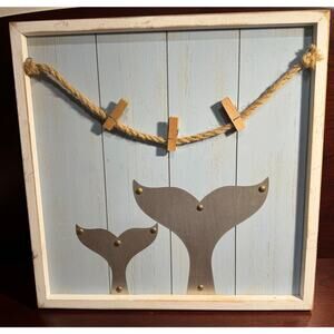 Kohls Wood Whale Tail Photo Display Picture Rustic Coastal Wall Hanging 15x15"