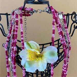 Kohls Costume Jewlery Two Necklaces Purple & Silver/Green/Brown & Gold Beads. One has Purple Beads w/Silver Accents. Long chain. Second one is Green/Brown Intertwined Beads & Gold Chain. Excellent pre-owned condition. Great for work, parties or casual events. Ships from a smoke and pet free home.