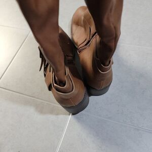 Kohls Womens Brown Leather Round Toe Block Heel Knee High Riding Boot Size 8.5 W