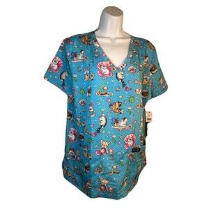 Koi Basics Critters Under The Sea Cats Women's 2-Pocket STRETCH Scrub NWT Sz L
