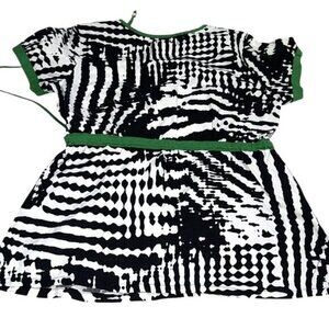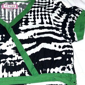 Koi By Kathy Peterson Womens Wrap Top S Black & White Tribal Print With Green Tr