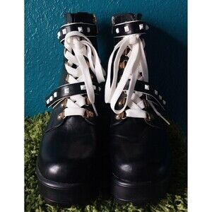 Koi Footwear Platform Boots UK Size 5 US Size 7 Stud Straps Black Lace up Zip