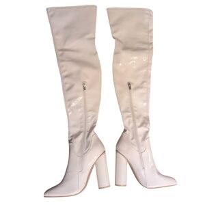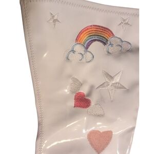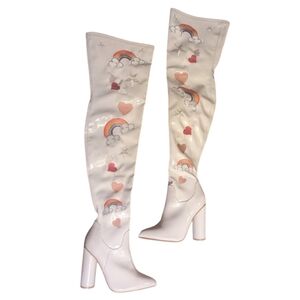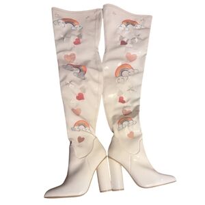 Koi Footwear Rainbow hearts Whimsical White patent thigh hi boots euro 37 US 6