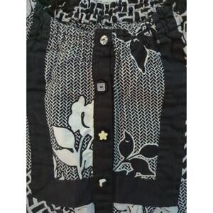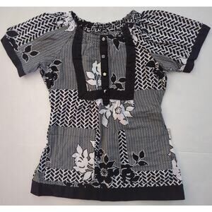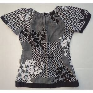 Koi by Kathy Peterson Black & White Floral Patterned Scrubs Button Detailed Pullover Top Women's Size XS