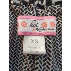 Koi Kathy Peterson 2 Pocket Floral Scrubs Black White 1/4 Button Womens Size XS