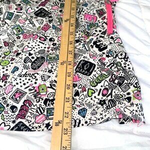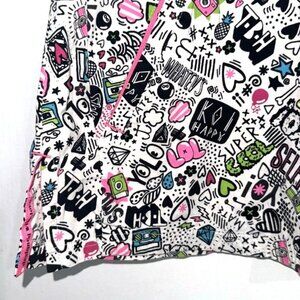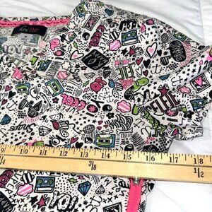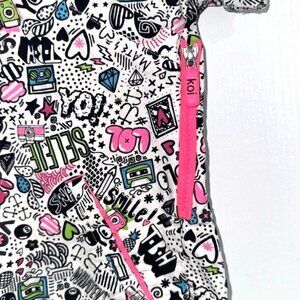 Koi Lite Womens Scrub Top S White Pink Fun Print Short Sleeves Zipper Pockets