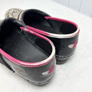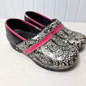 Sanita Black and White Patterned Clogs with Pink Accent Size 40