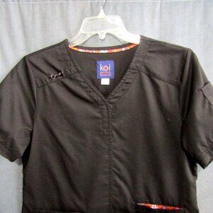 Koi Stretch Black Scrub Top Womens Size M 5 Pocket V Neck Nurse Vet Tech CNA Lab