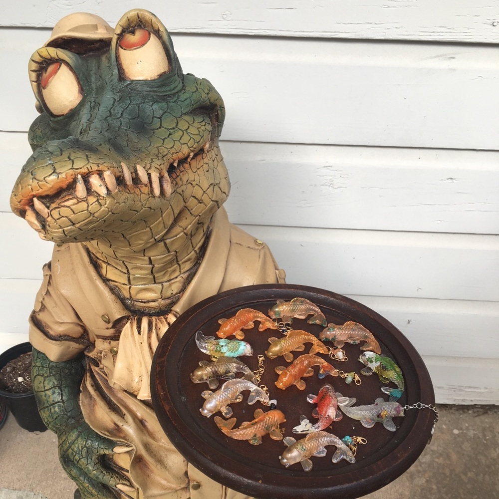 Koi fish Keychains!! Locally made with pressed flowers and healing crystals