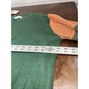 Koitmy Women's Green Contrast Sleeve Knitted Pullover Sweater Size Medium New