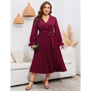 DESIGN: This A-line midi dress for plus-size women featuring an knee length, a