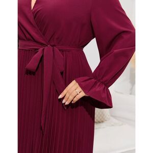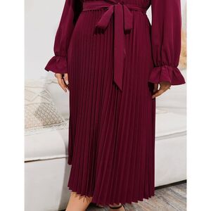 with a belt that can be tied to the front or back for a bowknot, and a pleated