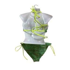 Koki Swimwear Sexy Green & Yellow Metallic Bikini Large Bathing Suit Beach Pool