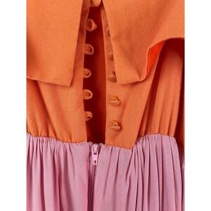 Charming color block maxi dress, perfect for warm weather occasions. This sleeveless dress features a vibrant orange bodice with a unique button-down design and a flowing pink skirt that adds a touch of whimsy. The lightweight fabric ensures comfort, while the flattering silhouette makes it ideal for both casual and semi-formal events. A versatile piece that can be dressed up with heels or down with sandals, making it a must-have for your wardrobe. Perfect for a summer brunch, a garden party, or a casual evening stroll.