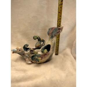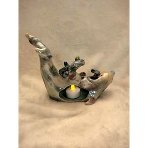 Koko Originals 2004 Metallic Hand Painted Glossy Dolphin Tea light Holder.... Figurine ..No chips or cracks.