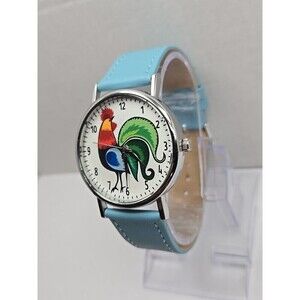 Kokofolk Rooster Folk Artisan Quartz Watch Blue Leather Band New Battery Poland