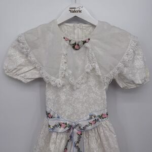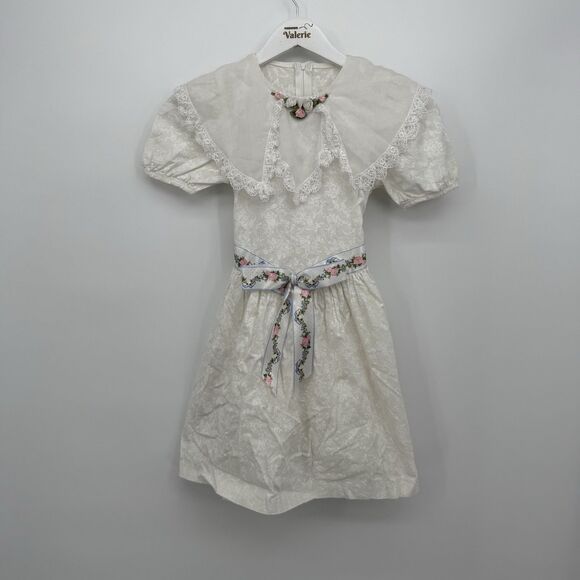 Kokomo Kids Vintage White Floral Collared Dress Girls Size 8 Coquette Bow USA