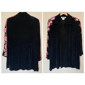 Kokomo Slingy Black Floral Open Front Vintage Cardigan XL