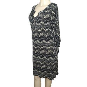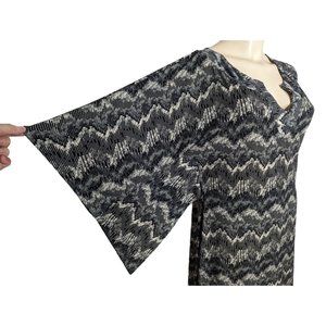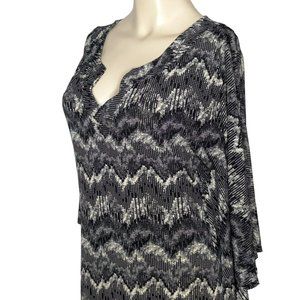Kokoon Vintage black gray white zig zag print wing sleeve Shift dress size M
