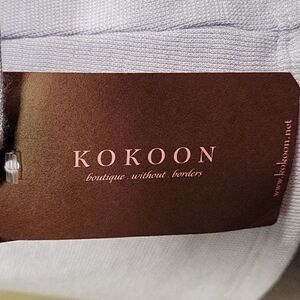 This tissue knit 2-layer top from Kokoon has a scoop neck and 3/4 length sleeves. Content: 75% polyester, 25% cotton. Care: machine wash, lay flat to dry.