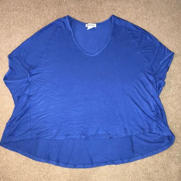 So soft and comfy, loose fitting, pretty royal blue color! A little longer in the back