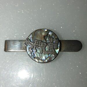 Kokopelli Abalone Inlay Tie or Money Clip Vintage Sterling Silver Stamped