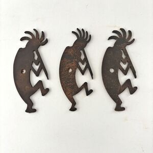 Kokopelli Metal Reversible Drawer Knob Lot 3 Southwestern Lodge Cabin Rustic Unused Measures approx. 3.5" long Mounting screws are included